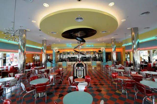 这里充满着各种好莱坞的美式复古情怀,无论是餐厅街道还是建筑。