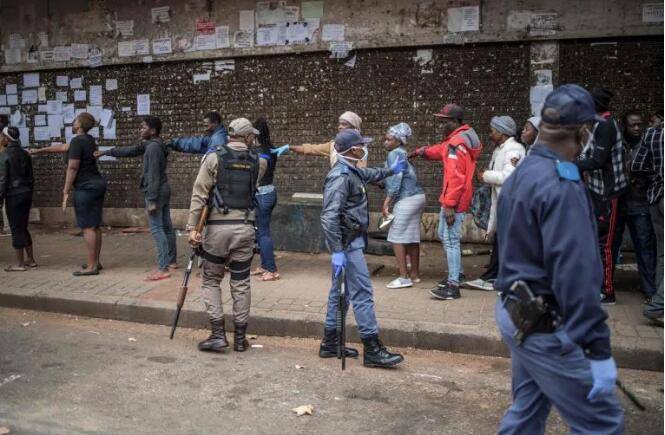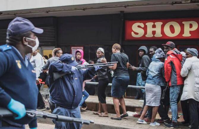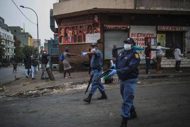 南非警方向他们发射橡皮子弹,迫使他们遵守“社交距离”的规定。