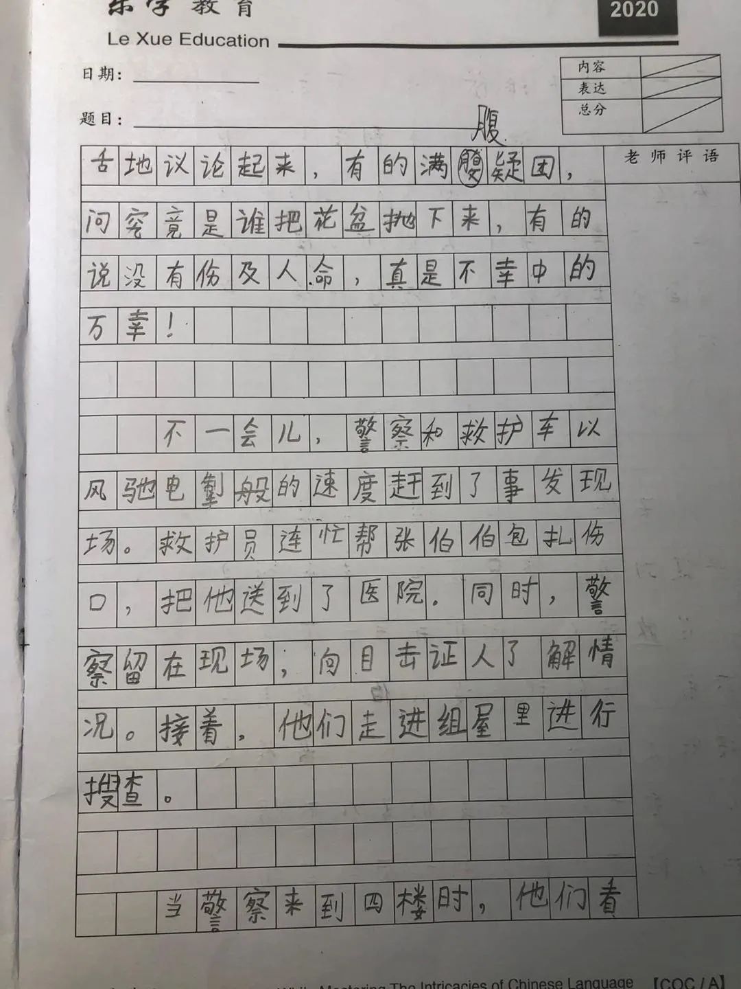 2018年的会考文章不管是开头结尾、主题表达、故事结尾,都可以原原本本地引用乐学教育的范文。
