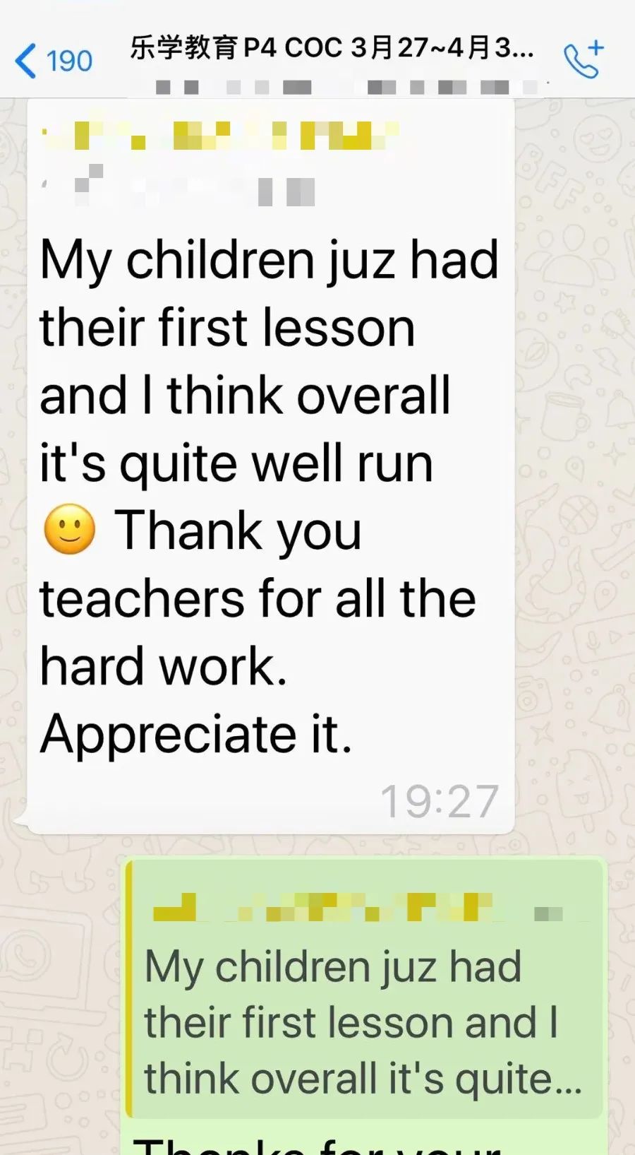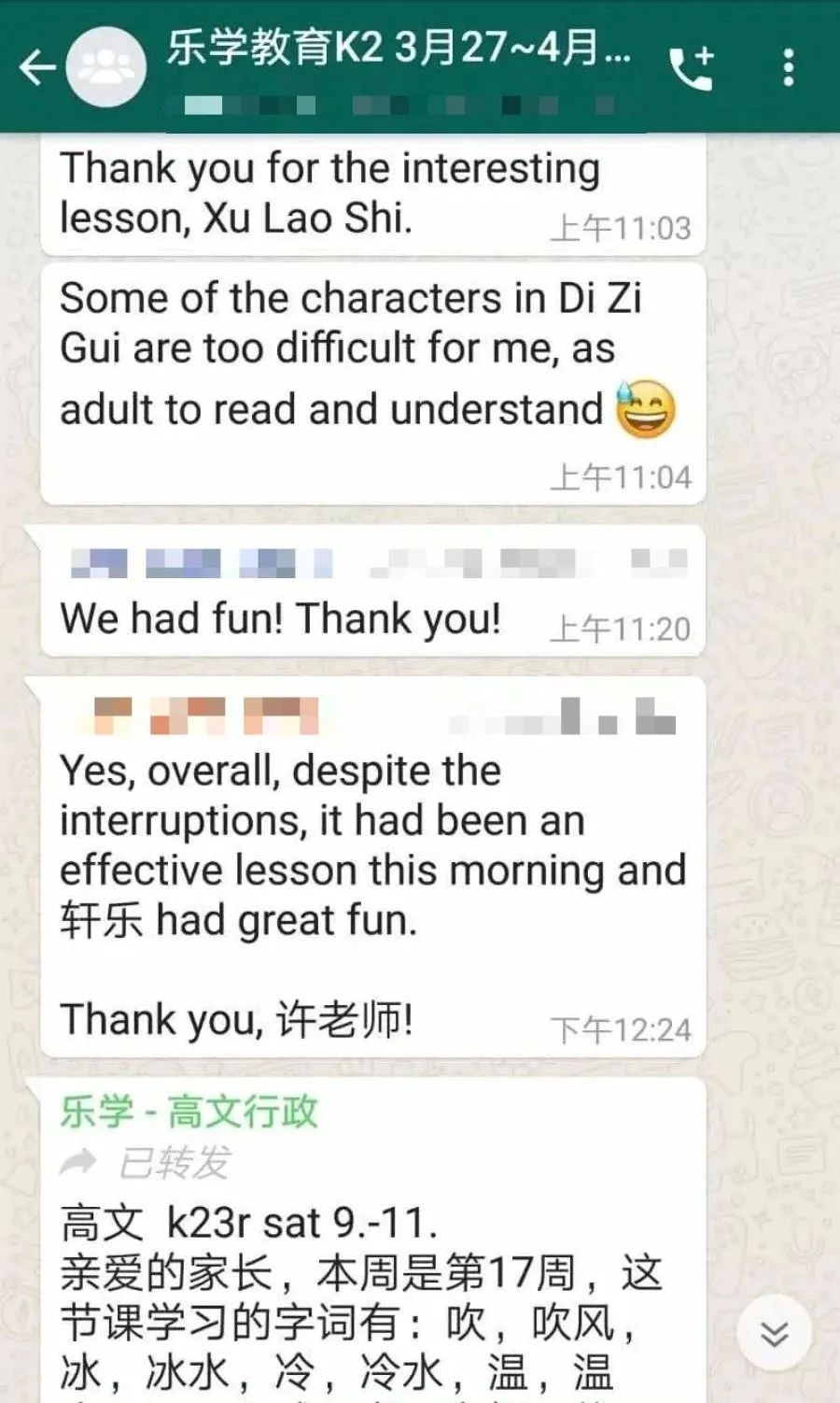 乐学家校沟通比较顺畅,试过网课之后,家长希望可以开更多的网课,老师也在积极反馈。