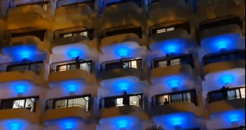 许多国人一到晚上8点,果然站在阳台或窗户旁大声鼓掌、欢呼,还有人高喊“谢谢”“加油”等。