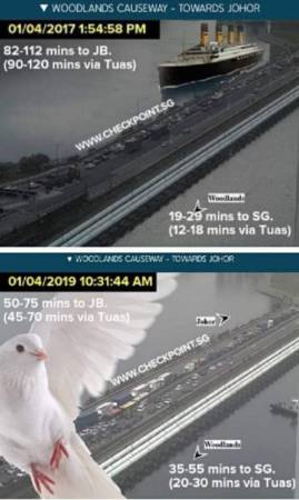 有网民上载过去3年3张柔佛长堤被恶搞的“作品”,前两年都在讽刺柔佛长堤大塞车的情景,例如,2017年在长堤旁的海上加上了一艘泰坦尼克号、2019年则在天空加上了鸽子,今年因行动管制令,则出现大象走在柔佛长堤上。