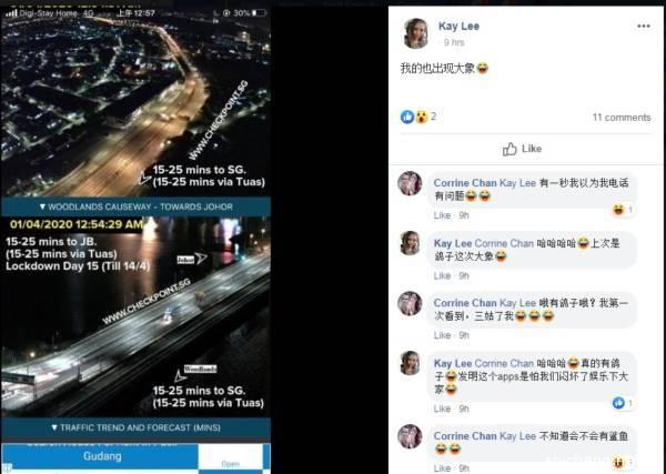 越堤族周三打开手机应用程序“Checkpoint Sg App”一看,发现柔佛长堤出现一只大象,一度怀疑自己手机有问题或眼花。