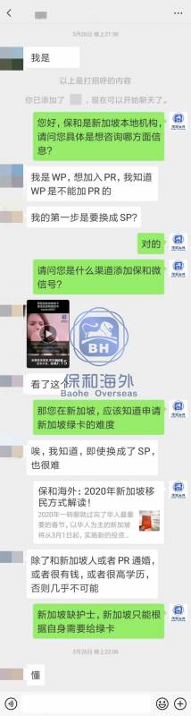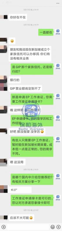 自从2020年3月GIP申请绿卡的门槛提高后,新加坡保和反而接获大量咨询新加坡移民的咨询,特别是一些企业家的需求直指新加坡绿卡:理想状态是兼顾子女教育(有学额尽快入读新加坡政府学校享受优质的双语教育)和事业拓展(进军东南亚新兴市场)。 在这些企业家群体当中,绝大多数都会问到一个词“自雇”。这是国内移民代理中介灌输的便捷低成本移民新加坡的途径:就是在新加坡成立一家公司,然后给自己申请一张工作准证Employment Pass/简称EP。听说费用少则几万,多则几十万人民币就能拿到新加坡绿卡。真的是这样吗?很多熟悉保和的朋友发来截屏或语音向保和顾问求证。