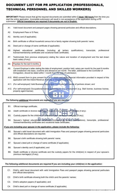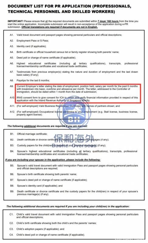 申请新加坡绿卡所需材料(来源:新加坡移民厅ICA)