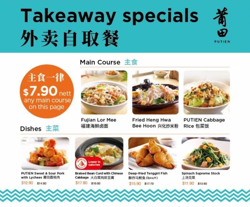 福建海鲜卤面、兴化炒米粉以及包菜饭这三款主食一律$7.9 。而其他主菜也有优惠。