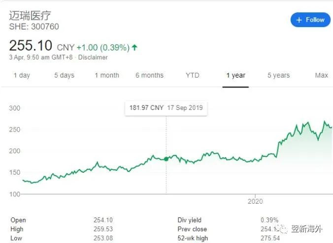受益于呼吸机需求的激增,深圳迈瑞生物医疗电子股份有限公司的股价今年累计上涨了40%,目前市值约440亿美元。