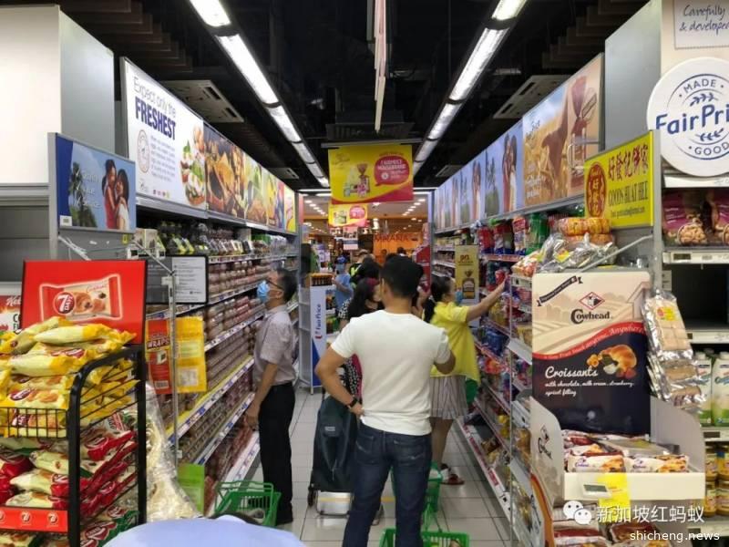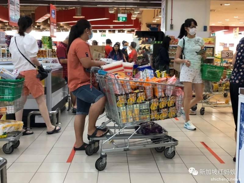 樟宜商业园的情景:大米、干粮、方便面一车一车被买走。