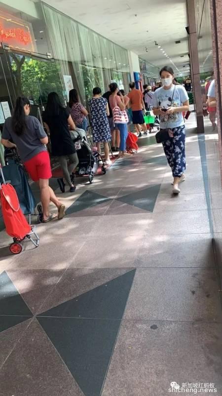 位于基里尼(Killiney Road)的职总超市排队进内的人龙已经到超市外了。(蚁粉提供)