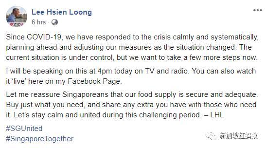 果真,下午2点14分,李总理真的在面簿上贴文说,下午4时将通过电视和电台,就我国接下来要采取的冠病应对措施发表讲话。