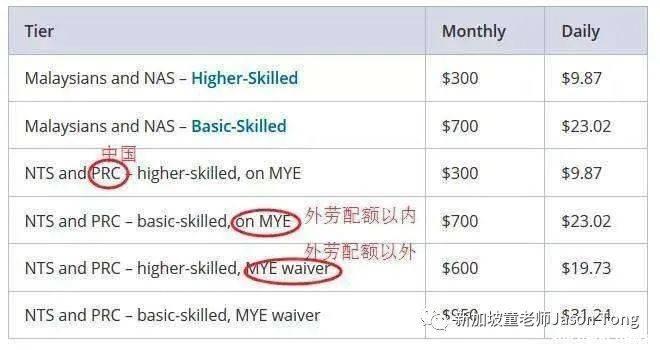 从表中可以看到,新加坡WP工作准证人头税最高可到近1000新元,SP准证也可达650新币。如果一个公司外国员工一多,这也是一笔不小的开销!!!