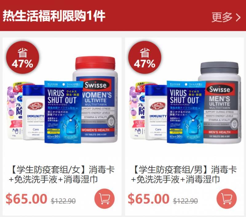 关爱在新加坡的留学生!男/女学生防疫特惠套组,限时秒杀,由内而外全方位防护, 一组就搞定!