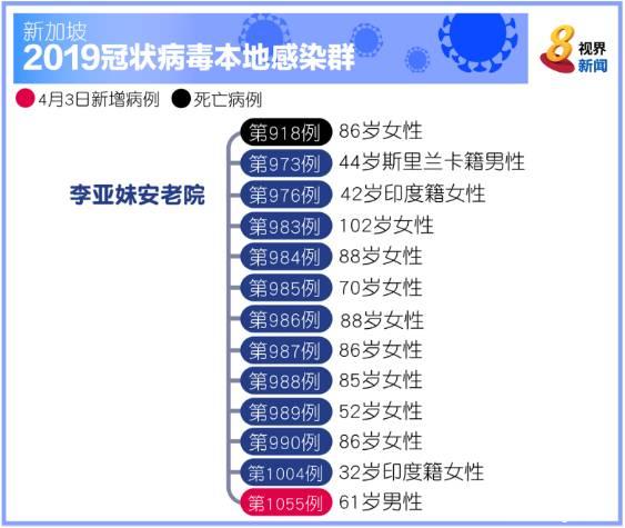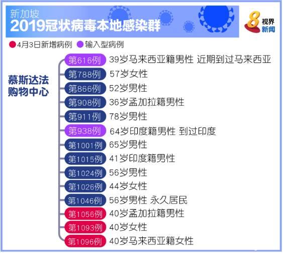 2月29日,新加坡的2019冠状病毒确诊病例总数突破100起,在一个月后的4月1日,确诊病例总数达到1000起,而从3月26日至前日(3日)的九天之内,新加坡的感染群增加了16个之多。