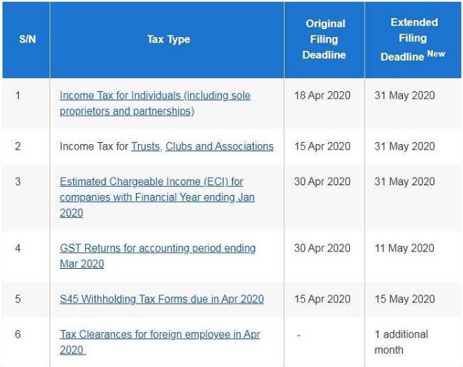 IRAS在(4月4日)发布的新闻稿中说,个人(包括独资经营者和合伙企业)的所得税申报截止日期将延长至5月31日。