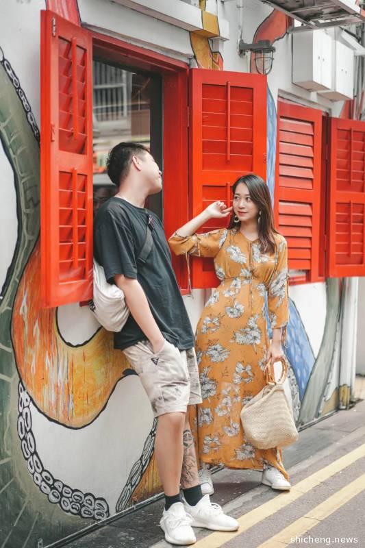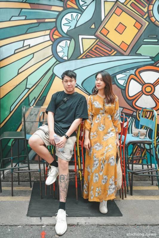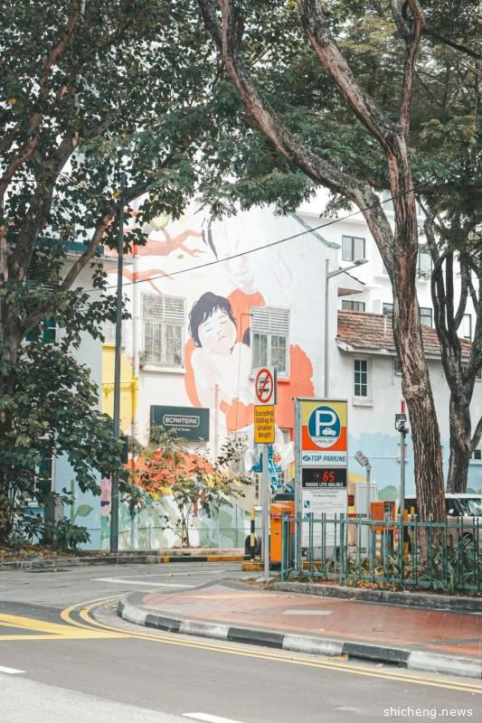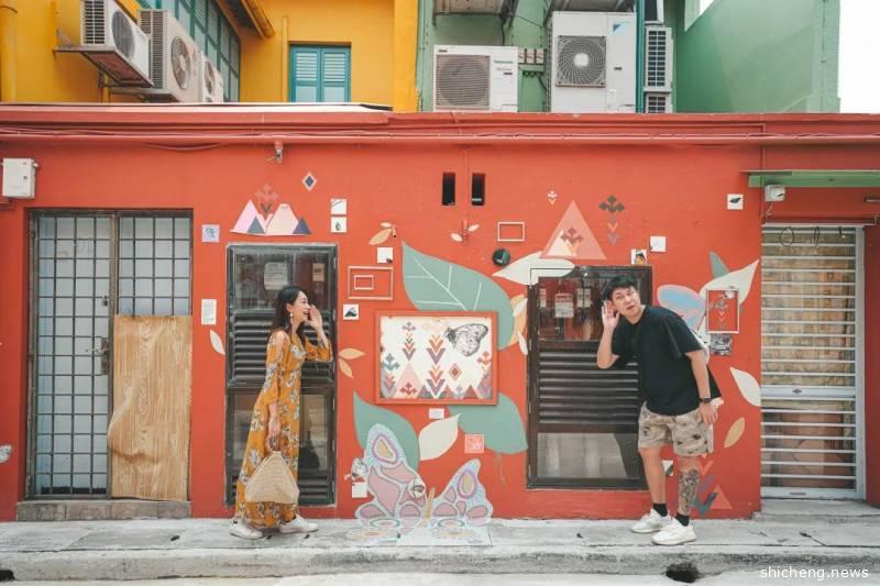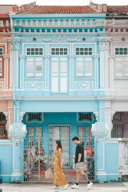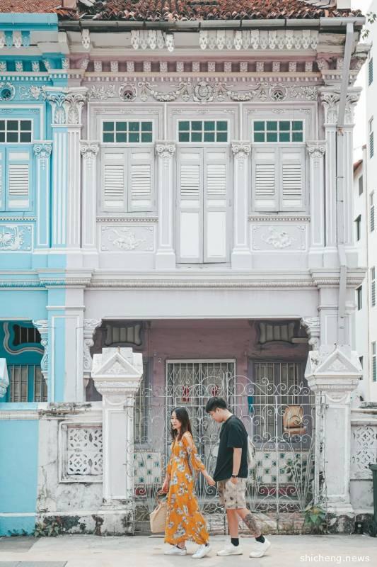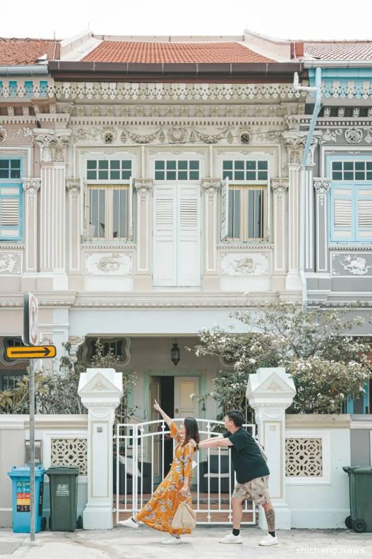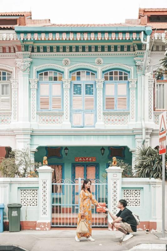 古董屋其实严格意义上是在如切路和Koon Seng路的交界路口,沿着如切路一直走也有一小段距离,两边都是居民楼,门前有行人道位置所以拍照特别方便,可以每一个屋子都打卡一组动作,拼凑9宫格神器!