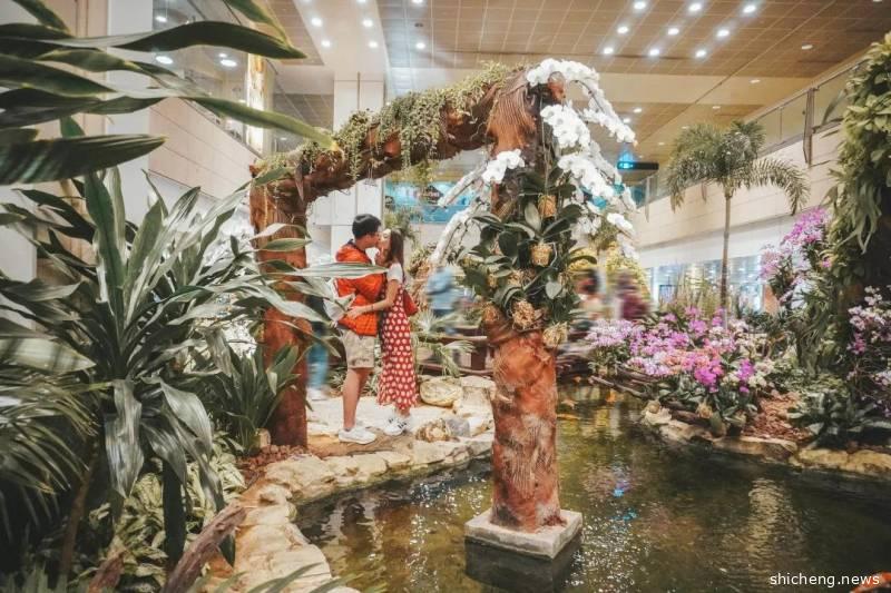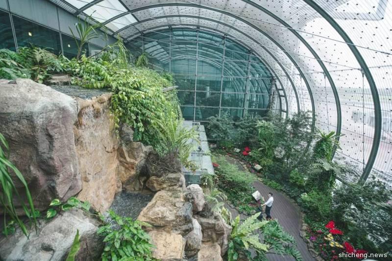 在T2航站楼的这个梦幻花园里充满着各种各样的花卉、绿植,所有关于亭台楼阁的故事都能在这里找到,漫步在花园里还真蛮享受的。