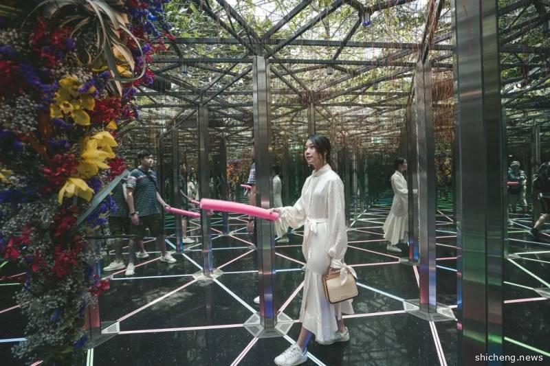 这个世界首创、以花园为主题的镜子迷宫,简直就是一个光怪陆离的世界。进入迷宫需要拿上一根软棒,防止受伤,迷宫上方是层层绿荫,通过镜面折射,仿佛有无尽的绿林覆蓋,为迷宫增添一层神秘感,在里面漫步还真的有种真真假假分不清楚的感觉,特别有意思!