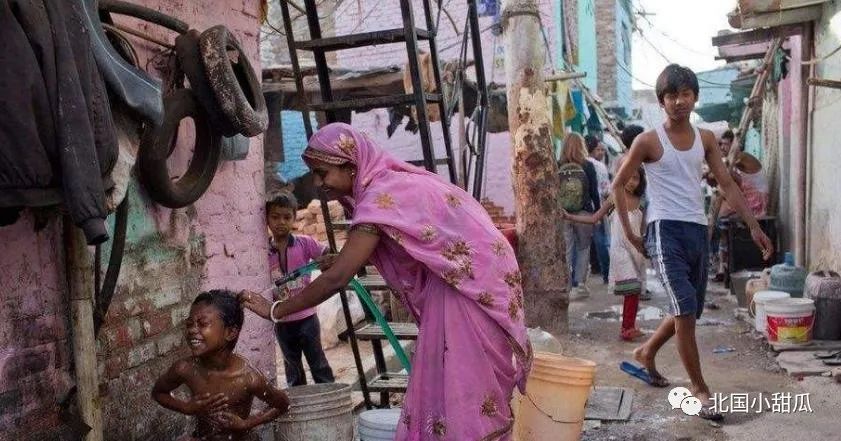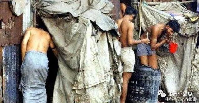 由于没有排污系统,当地男性居民大庭广众洗澡贫民窟不仅点中了印度疫情的“命门”,