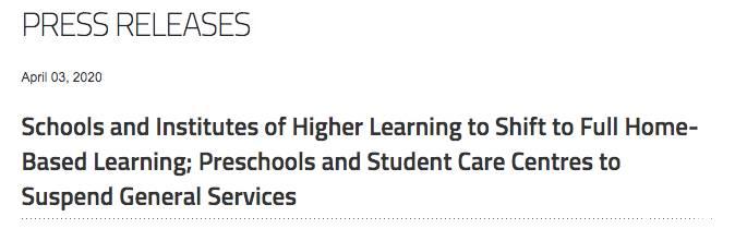 文稿内容主要为学校和高等教育学府会全面实施在家学习(home-based learning)、托儿所及学前教育和学生托管中心则须暂停服务。
