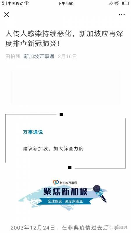 首先应该对疫情期间武汉来新加坡的人员。笔者早在2月中旬,曾经多次呼吁,建议新加坡加大病毒的筛查力度,当时重点是疫情期间从武汉来到新加坡的人员,总数只有几千人,而当时全新加坡,也只有几十个人发病,这些人当中,为什么发病率很低?极大可能隐藏着无症状者。当时只对他们进行了”隔离“。