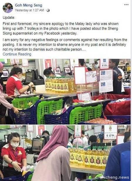 (新加坡7日讯)新加坡巫裔女义工到超市用上7辆手推车购买粮食,准备用作慈善用途,却遭该国1名反对党领袖发帖,质疑她批量购买的行为;后者之后为其帖文,对该名女子造成的负面留言道歉。