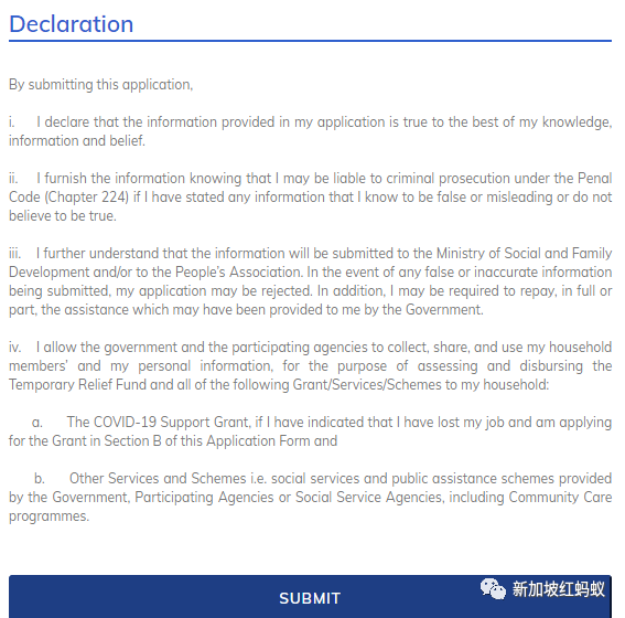 申请程序宽松但要求作法律声明 根据当局公布的详情,年满16岁,因冠病疫情失业或收入下跌至少30%,同时受影响前家庭月收入不超过1万新元的中、低收入国人才有资格获得一次性500新元的短期援助基金。符合获取援助金资格的国人可在4月1日至30日期间,通过填写线上表格或到附近的社会服务中心或民众联络所申请。根据短期援助基金申请网站的说明,整个线上申请过程只需要10分钟,申请表格除了前面11道个人题,其余7道题目分别要求申请者列明家庭成员数、家庭月收入、个人月收入、是否接受过其他类似补助,以及是否因疫情丢失工作或收入减少等。网站也要求申请者上传冠病疫情发生前的收入证明。无论如何,根据李智陞的说法,即使没有没有上传相关证明文件,申请仍会获得接受。