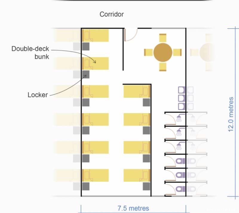 目前专建宿舍规定要有正式的卧室和床、厕所和淋浴设施、提供电视和报纸的休闲空间、根据客工需求售卖食物和其他必需品的超市或小卖部以及医疗室。