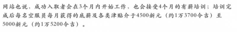 新航初级空服人员的工资