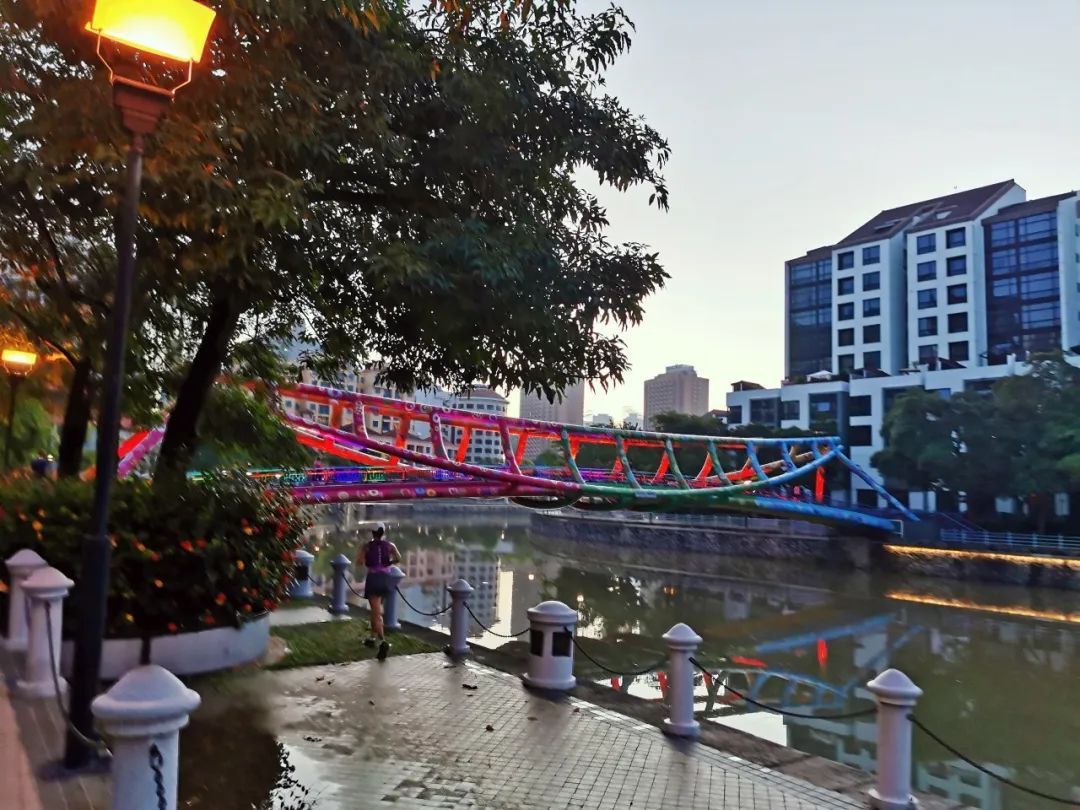 美丽的新加坡河畔,仍在一片星光倒影之中,河边的人非常多,好像半个新加坡的人都在河边运动。