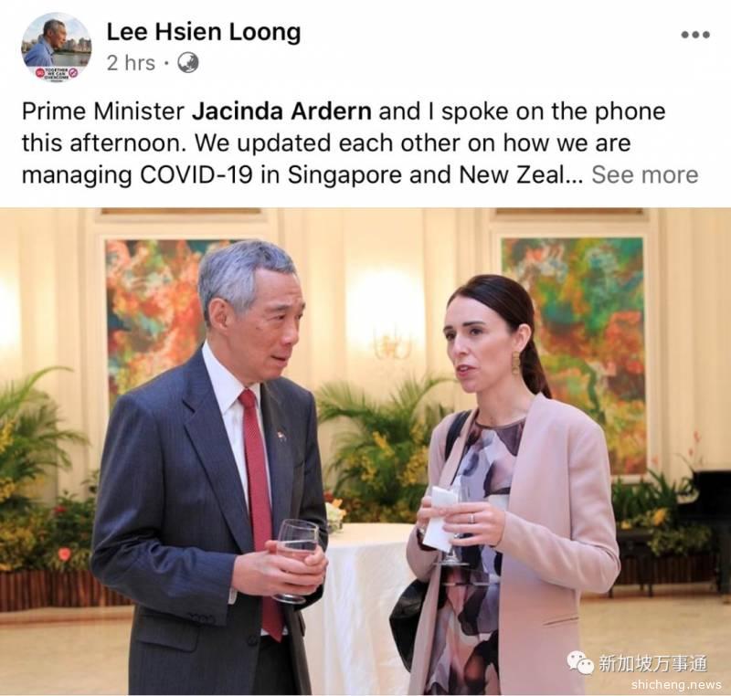 中午,李显龙总理和新西兰总理阿德恩(Jacinda Ardern)通电话,针对两国政府如何管控疫情相互交流。