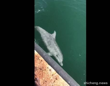 海豚直接游进了人们的窗户外面。