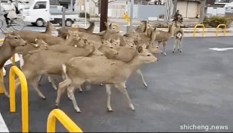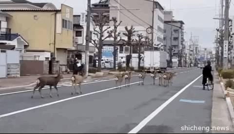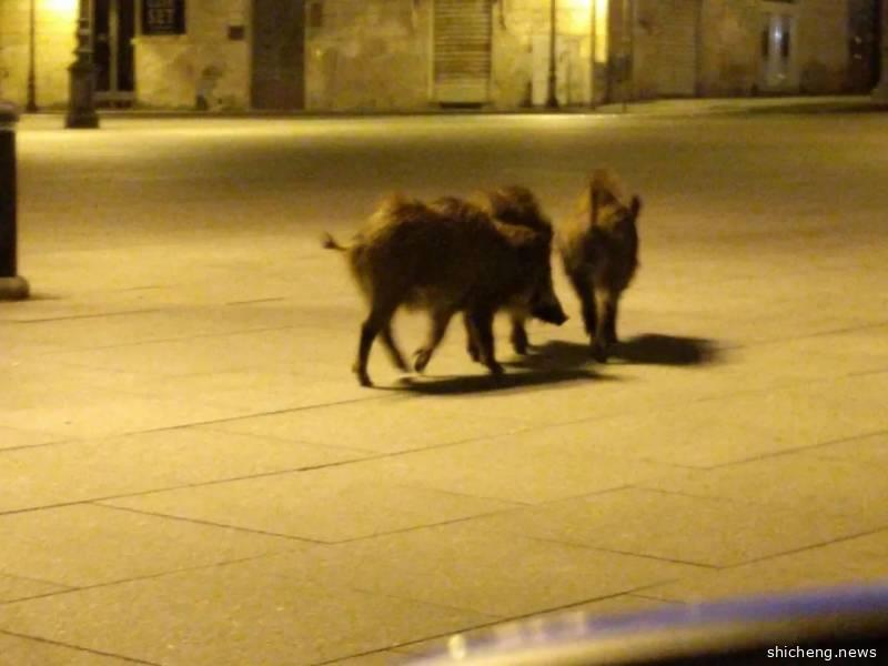不止新加坡,很多其他国家也出现了类似的场景,人类被关在屋里,动物们则大摇大摆成群结队地上了街。