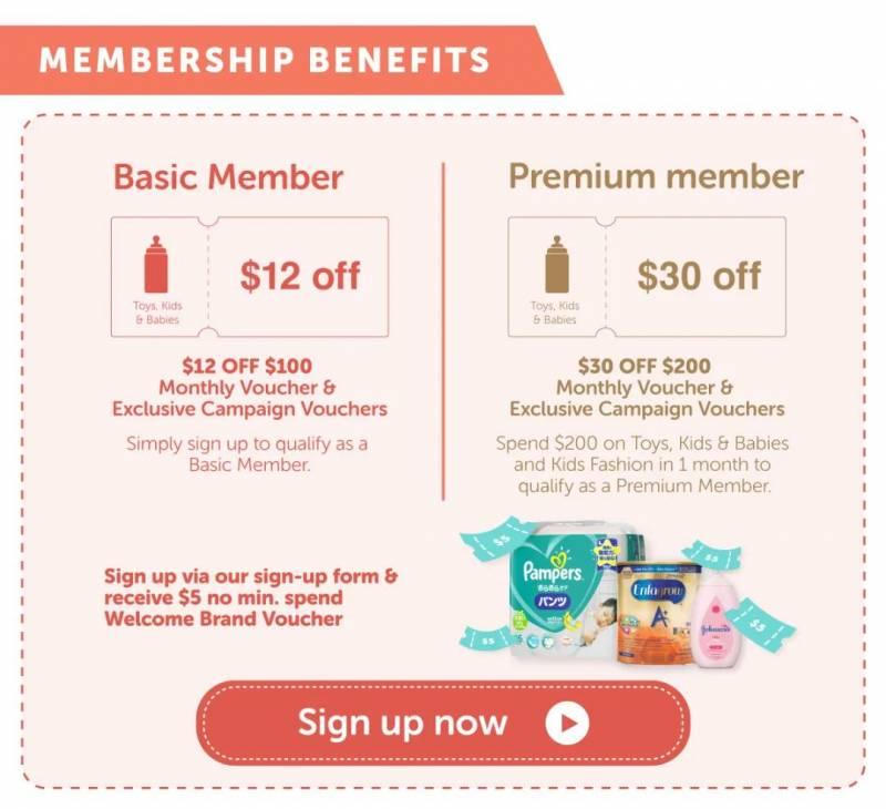 注册成为初级会员,立刻获得$12现金券,购物满$100即可使用。 在1个月内购买玩具、婴儿以及儿童衣物满$200,即可获得$30代金券。