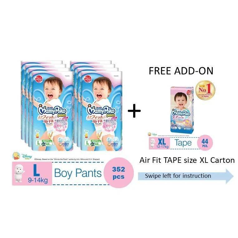 MamyPoko,是日本知名品牌尤佳妮旗下的知名纸尿裤生产商。柔软舒适、立体剪裁,受到许多妈妈和宝贝的喜爱。 MamyPoko 空气感纸尿裤 任意购买2箱(每箱4包,优惠价$103.80)MamyPoko 空气感纸尿裤,就赠送一包XL空气感纸尿裤(44片)