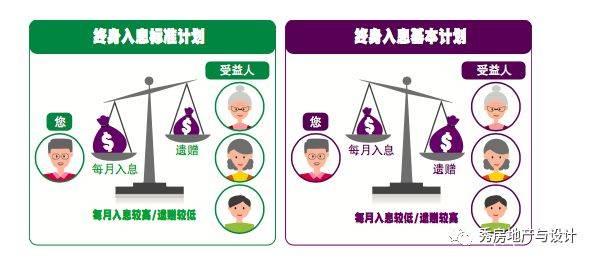 每月收入的不同,标准计划有更高的每月收入;遗产数额的不同,基本计划有更高的遗产数额: