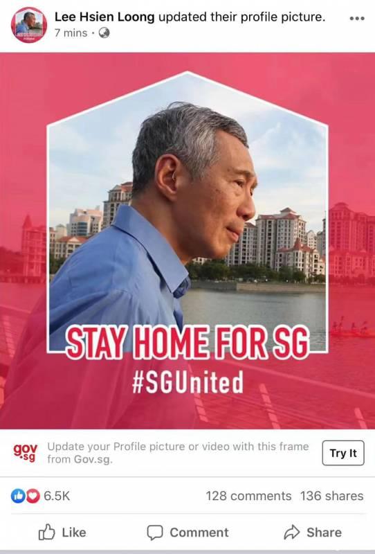 李显龙总理FB换头像: 呼吁Stay Home for SG
