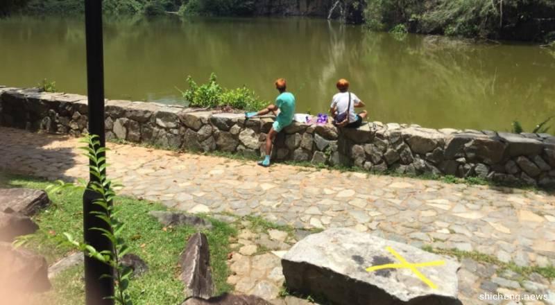 在阻断措施期间,仍有不少民众违规,图为民众在武吉巴督市镇公园(Bukit Batok Town Park)钓鱼 国家公园局也劝请公园的访客肩负起社会责任,严格遵守安全距离措施。