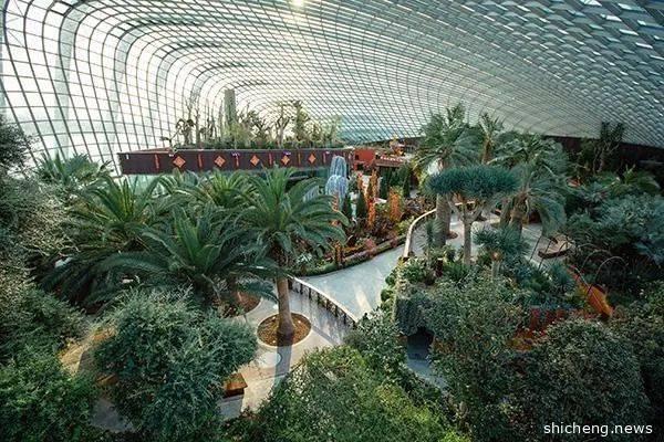 来新加坡滨海湾花园春游,一定不要错过花穹(Flower Dome)。这是花园里最受欢迎的景点之一,同时也是经吉尼斯世界记录认证的“世界上最大的植物冷室”。占地12,000平米,整个花穹的面积比两个足球场还要大。这里遍布著来自全球六大洲(除南极洲外)的奇花异草,包括南非的国花帝王花,非洲猴面包树……在花穹里转上一圈,就能看到全球各地的植物。