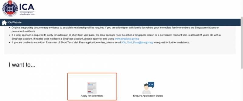 第一步 ,打开新加坡移民局签证延期网站: https://eservices.ica.gov.sg/esvclandingpage/extend