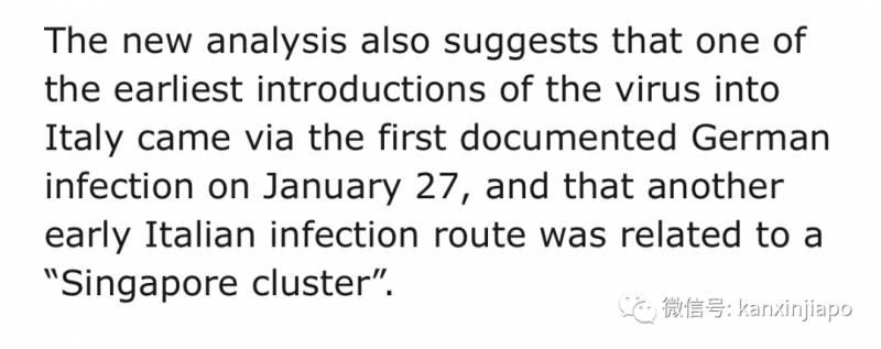 这个分析也指出,意大利最早的一个输入源来自1月27日的一个德国病例,而另一个输入源则与“新加坡感染群”有关。