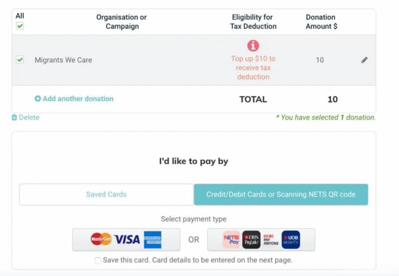 有意愿帮助客工的民众可拨打65362692,通过热线与新加坡外籍劳工中心取得联系。民众也可以通过网址www.giving.sg/mwaf/migrantswecare,到有关平台捐赠善款,点击网址后就可以捐赠不同的金额,同时捐款额度和进度也会在网站上显示。所捐款项将得到法定的税务回扣。 点击网址后进入此页面