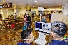 工作人员在新加坡机场进行体温监测