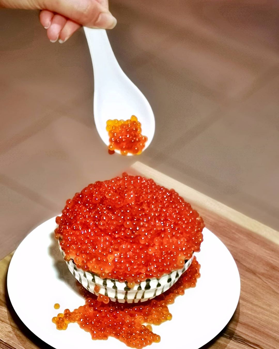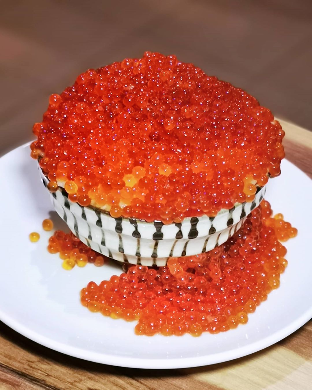 将鲜橙色珍珠鲑鱼子与特殊的酱油和醋混合腌制,注入了更多风味,当然餐厅还特别注重鲑鱼卵的质量,因为它是关键成分,因此与众不同。总而言之,当鱼子在口中爆裂时流泻出充满海味、咸甜交织的汁水,美味鲜甜的口感充盈你的味蕾,一瞬间扫完整碗不在话下!