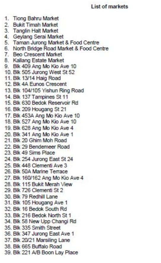 这些巴刹包括芽笼士乃、裕廊西52街第505座以及义顺环路第104和105座。