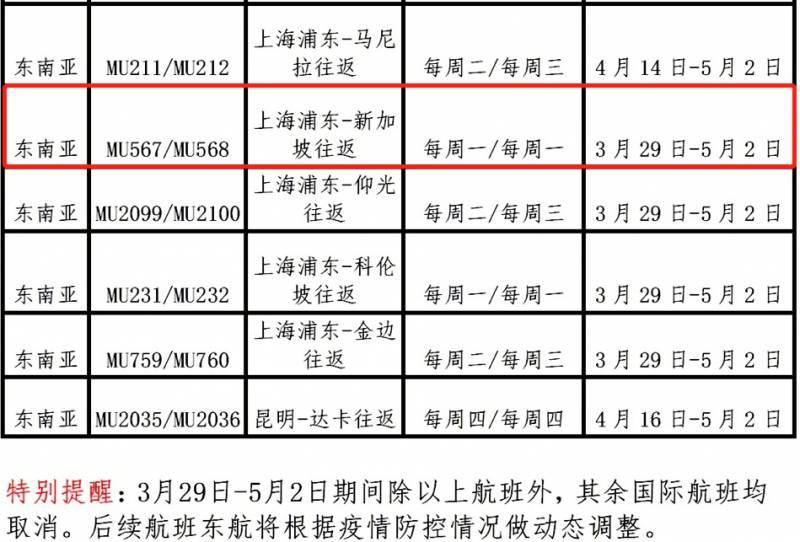 保留上海浦东--新加坡 的往返航班 确保每周一班(每周一)
