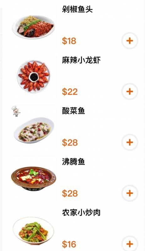 麻辣小龙虾、酸菜鱼、泡椒田鸡