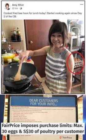 前天许连碹博士通过Facebook上传一张在家里厨房炒米粉的照片,并指自己从阻断措施落实第二天起就在家下厨。然而,眼尖的网民却发现照片右下方放着三盘鸡蛋。