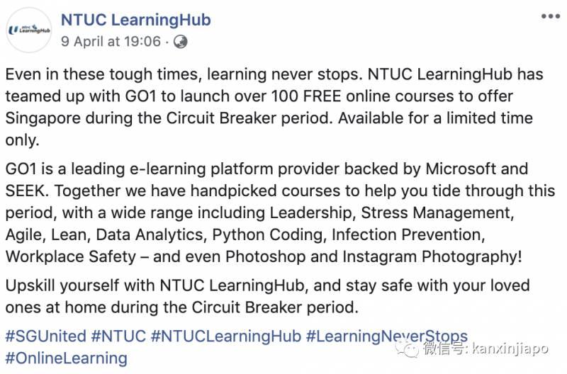 新加坡职总恒习(NTUC LearningHub)推出100多个线上免费课程,帮助新加坡居民们在疫情期间自我提升。