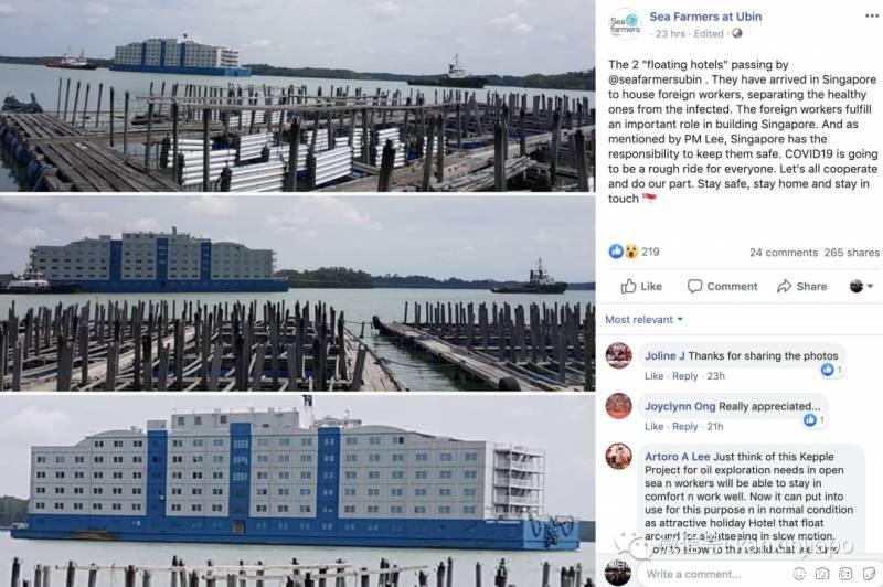 为了分散客工,新加坡政府专为健康客工准备浮动宿舍,每个宿舍能容纳300至600人,目前已经停工的健康客工们,这个星期将陆续住入浮动宿舍。