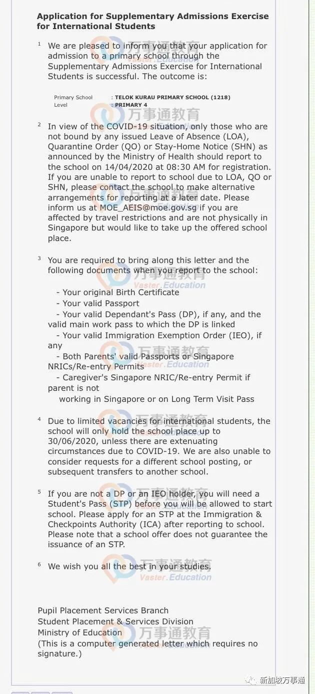 如果受疫情影响不能回到新加坡或去到学校报到,学生需要写邮件至“[email protected]”解释自己的情况,接受录取。